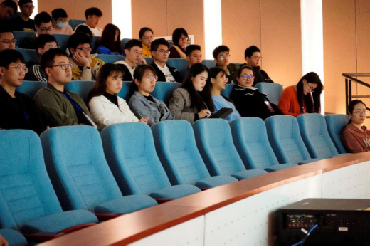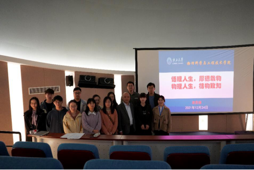 院长梁恩维教授为主讲人,向物理学院研究生学子传授思想与科研方面的知识。