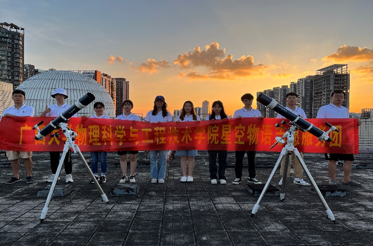 星空物语志愿服务团以饱满的精神状态和认真负责的态度,依托学院天象馆开展了一系列天文科普活动。先后接待了那坡县中小学优秀学子、西大第一附属幼儿园,组织了“超级月亮”观测活动等,服务了超过1000人次,在轻松愉快的氛围中让师生们感受到科研之美、宇宙之美。