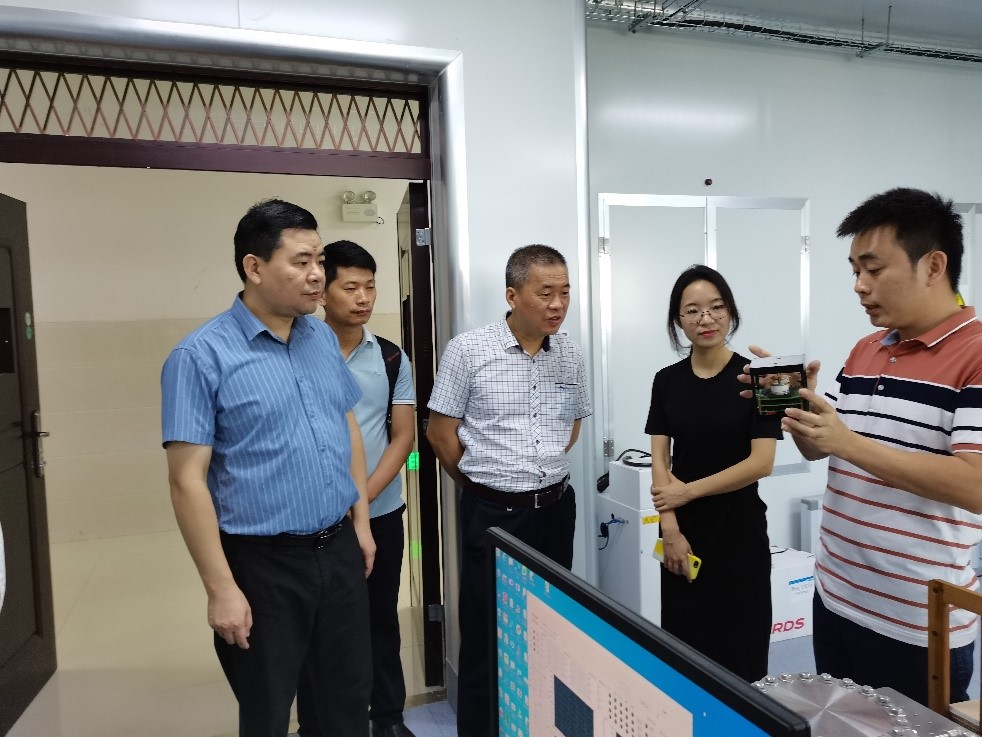 肖剑荣院长一行首先前往麻豆AV 洁净实验室、物理实验实训中心、蓝色能源实验室、空间粒子探测实验室进行了实地考察调研。