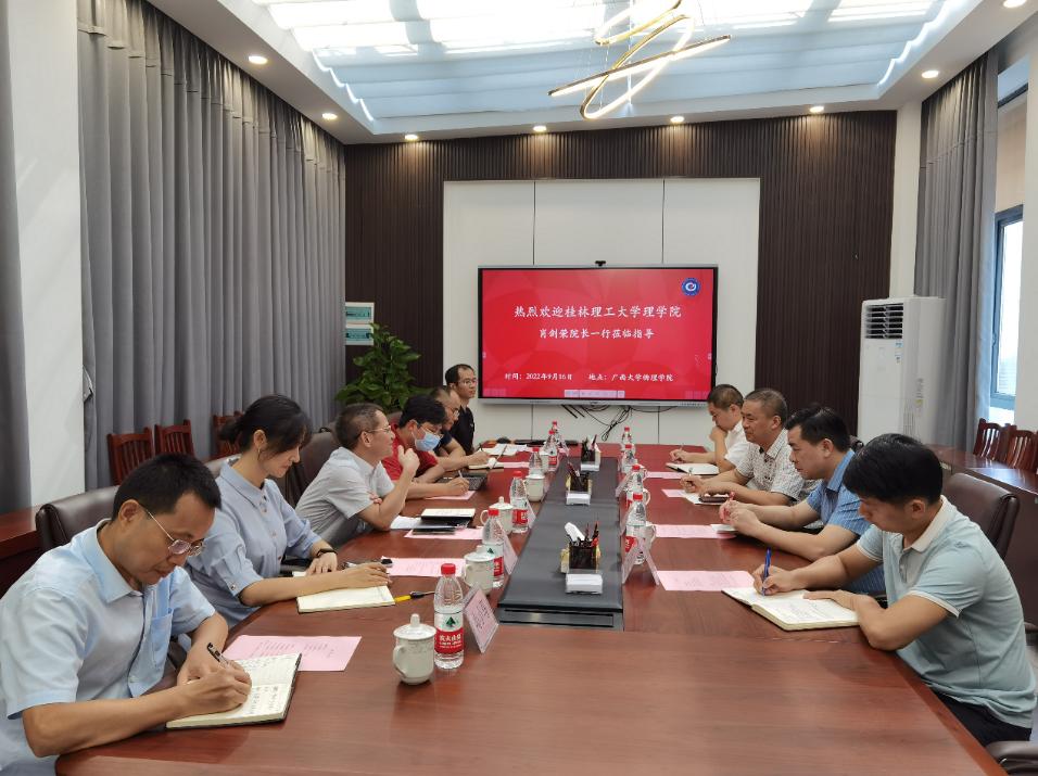 9月16日上午,桂林理工大学理学院肖剑荣院长一行到麻豆AV 考察调研。学院党委书记袁涛出席座谈会并致欢迎辞,学院常务副院长王祥高主持座谈会。