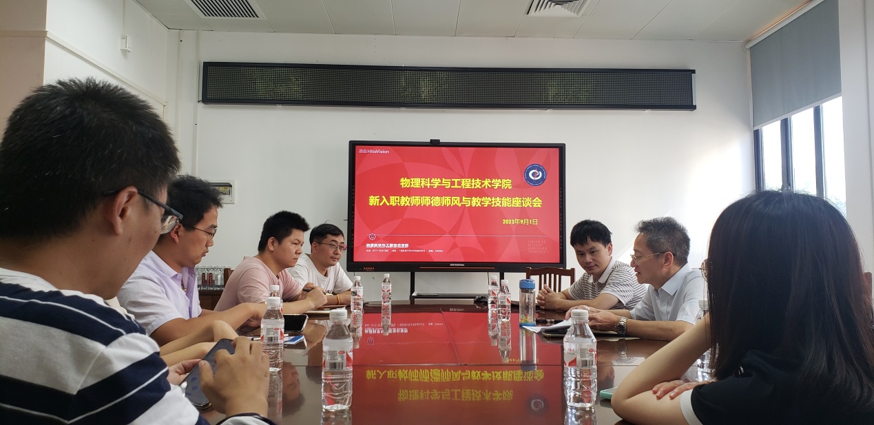 在D207召开提升新入职教师教学能力座谈会。物理学院袁涛书记主持会议,教学副院长林达斌和学院近三年入职青年教师参会。