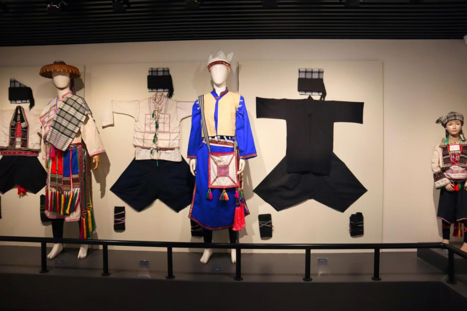 展厅中陈列着许多精美的彝族服饰,吸引了师生们的目光。据张正淳书记介绍,彝族服饰的纯手工制作一般需要半年时间,要经历种植和收取棉花、纺成线、织布、浸染、缝制、刺绣等程序,才得以形成一件精美的彝族服饰,这些古老、质朴、美丽的手工技艺在彝族人民中代代延续。