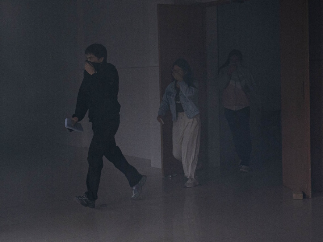 消防理论知识培训结束后,全体参与师生回到各自工作和学习的场所,消防安全疏散演练正式开始。随着火灾警报拉响,按照学院制定演练方案,现场指挥领导和引导员立马就位,迅速组织楼内的老师和学生从安全通道有序疏散,撤离“火灾”现场,到达学院大门前空地的安全区域。整个过程有序、高效,展现了学院师生们的应急处理能力和团队合作精神。