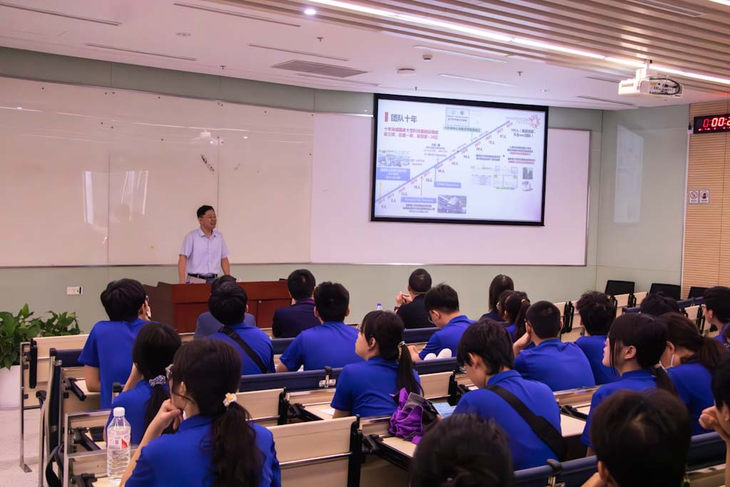 24日上午,实践团走进上海科技大学物质科学与技术学院,在江怀东教授的带领下,同学们了解并参观活细胞结构与功能成像等线站工程和上海硬X射线自由电子激光装置等国家重点科技基础设施项目。