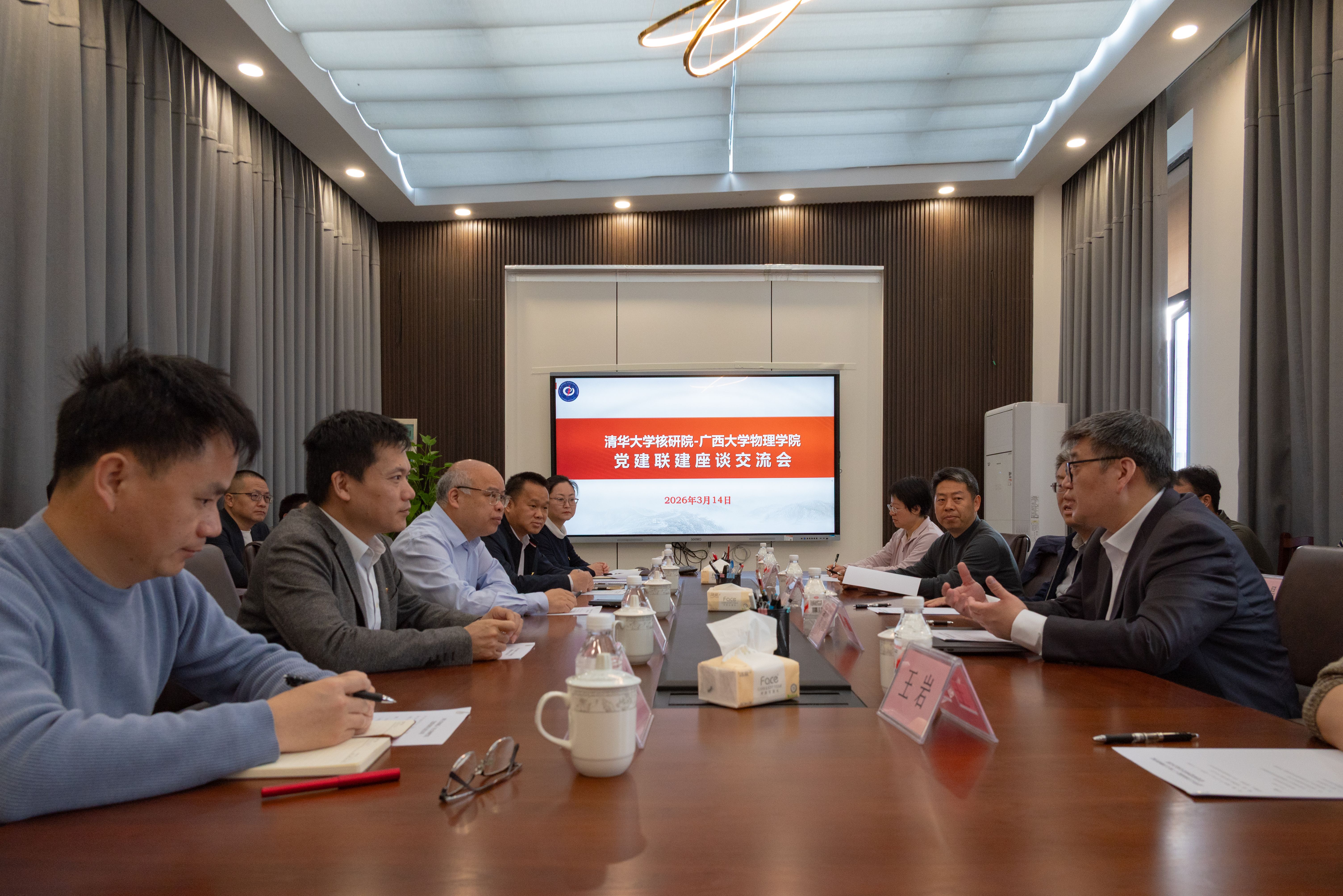 梁恩维对清华大学核研院103室党支部一行的到来表示热烈欢迎,对核研院在党建引领科研攻关、人才培养等方面取得的突出成效给予高度评价。他指出,此次联学联建是优质党建资源的双向对接,更是样板支部互学互鉴、共促提升的重要契机。清华核研院传承的“235精神”是凝聚科研力量、践行报国初心的宝贵精神财富,希望物理学院深入学习借鉴,将精神力量转化为学科发展的实际行动。结合广西钍资源区位优势,梁恩维希望双方以此次联学联建为纽带,在钍等关键金属与核能材料研究领域深化有组织科研合作,在人才联合培养、师资互访交流、科研团队共建等方面搭建长效合作平台,推动党建与学科发展深度融合,实现优势互补、共赢发展。