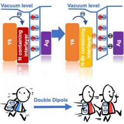 溴离子倾向于从PFN-Br中断裂,并与银电极形成新的化学键,该化学键可以吸附从界面层指向银电极的额外偶极子。这些关于双偶极策略的发现为高效非富勒烯有机太阳能电池的混合阴极界面层提供了新的工作机理。