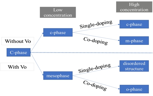 图 1. 由缺陷情况、掺杂浓度,以及掺杂种类共同影响的立方相的相变过程