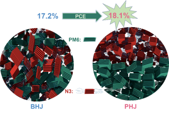 有机太阳能电池(OSCs)由于其可调的能级结构、合成成本较低、质量轻、柔韧性等优点而受到广泛关注,尤其是非富勒烯受体(NFA)的出现将有机光伏电池的效率提升了20%,其中,给体-受体之间的电离能(IE)偏移是影响效率的主要原因之一。然而,目前高效的NFA OSCs的活性层主要由给受体混合在大块区域的体异质结结构(BHJ)组成,因此会导致局部能级紊乱,为研究IE对OSCs效率影响的研究添加了困难。