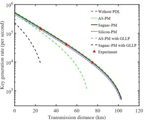 量子密钥分发(Quantum Key Distribution,QKD)能够在两个远程用户之间共享安全的随机密钥,其信息理论上的安全性由量子力学基本原理保障,因此被认为是未来安全通信的有力候选方案。QKD近年来在理论和实验研究上不断取得了新进展。其中,由于实际设备不完善带来的现实安全性问题,是QKD实用化进程中亟需解决的问题。现有报道的众多QKD演示实验,在安全密钥率估计中,并没有考虑实际态制备过程中的偏振相关损耗(Polarization-Dependent Loss, PDL)。这一现实安全问题将会导致对安全密钥率的过高估计,从而影响实际QKD系统的安全性。