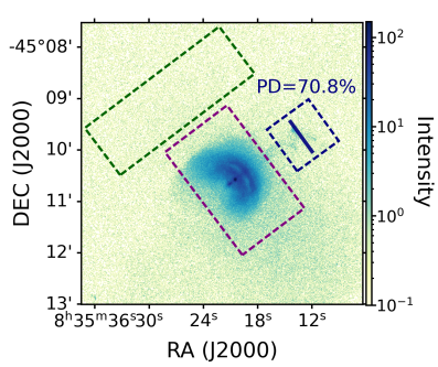 研究发现,Vela脉冲星风云的喷流具有很高的偏振度,其磁场方向与喷流的出射方向垂直,这符合传统理论中脉冲星风云的喷流起源。传统理论中喷流的起源被认为是脉冲星抛射出的高纬度星风在磁环向应力的作用下,汇聚在脉冲星及冠区上方后受挤压而驱动的。在该模型框架下,喷流内部的磁场是环向的,方向与喷流方向垂直,观测结果与其一致。此外,在喷流中发现了较高偏振度,这表明该区域具有有序的磁场结构。考虑到Vela脉冲星风云的喷流具有螺旋性,以及喷流区域整体的高偏特性,可以推断出喷流的磁场并不会随着喷流形态结构的改变而改变。麻豆av相关的文章成果已经被《Monthly Notices of the Royal Astronomical Society》接收。