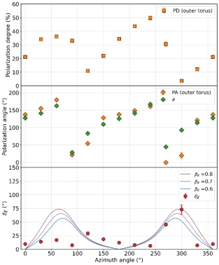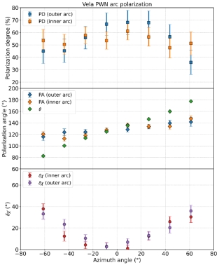 图1. Crab蟹状星云沿双环结构的偏振结果。