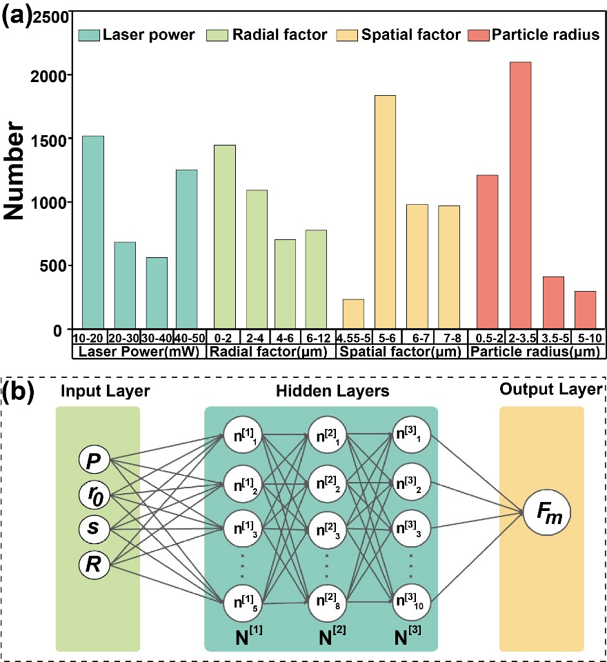 本研究深入探讨了光束参数对光力的调谐规律,基于深度学习神经网络预测尖点突变自聚焦光束在Mie粒子上的光学捕获力,在优化光捕获的时间效率上提高了104倍。相关分析不仅揭示了光束参数、颗粒尺寸对光力的调谐规律,而且突出了深度学习网络在处理复杂数据与优化调谐光力中的优势。该方法可以扩展到其他的结构光束,而不显著增加其网络复杂性。这扩宽了神经网络在光镊中的应用,为结构光场的调谐与优化提供了更加高效的方法,为未来的实验设计和优化提供了有力的支撑。